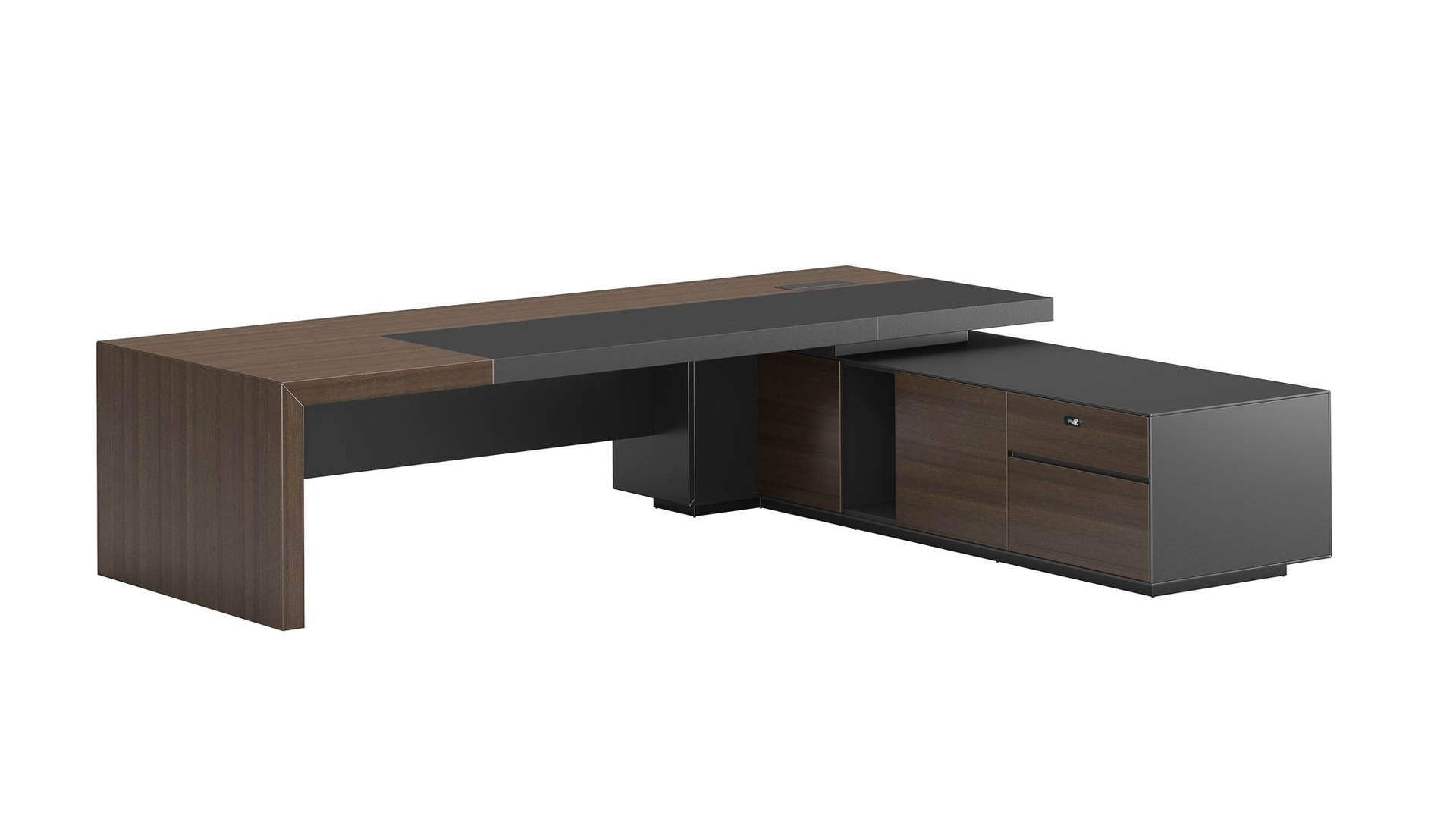 明哲系列辦公家具,采用直紋胡桃和星空灰實(shí)色漆元素,高檔實(shí)木質(zhì)感飾面,深邃飽滿(mǎn),紋理清晰,內(nèi)蘊(yùn)深厚。搭配簡(jiǎn)約端正的造型設(shè)計(jì),臺(tái)腳的斜切裝置,還有產(chǎn)品的布局變化,錯(cuò)落有致,承前啟后,展現(xiàn)極致簡(jiǎn)潔和視覺(jué)效果的完美詮釋。低調(diào)又不失時(shí)尚,穩(wěn)重又不失靈動(dòng),既營(yíng)造現(xiàn)代時(shí)尚的情緒,還給當(dāng)今辦公環(huán)境注入明亮、輕松的舒適感。