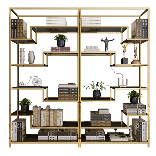 輕奢24k金不銹鋼書柜定制_不銹鋼書架生產(chǎn)加工廠圖