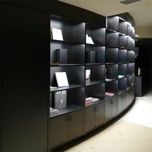 圖書館的黑色鈦金拉絲不銹鋼書架由304不銹鋼制成,經(jīng)過多弧離子真空電鍍和納米防指紋處理。