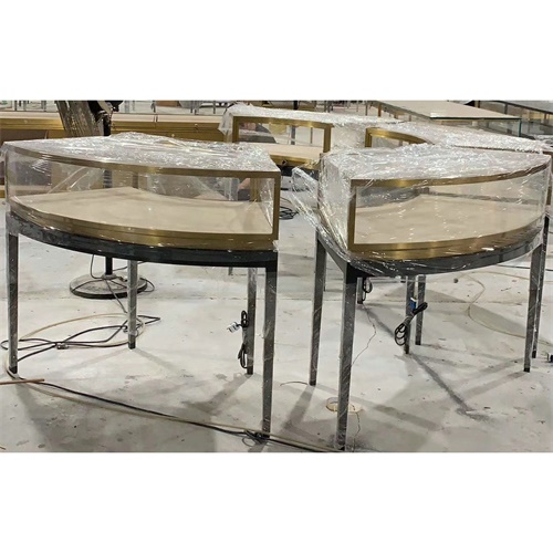 弧形黃金珠寶展柜_不銹鋼黃金飾品玻璃展示柜