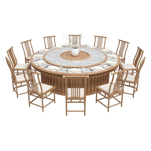 酒店包廂新中式實(shí)木2米電動餐桌圖