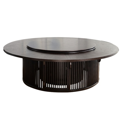 酒店包廂新中式古典實(shí)木2米20人帶轉(zhuǎn)盤電動(dòng)餐桌圖