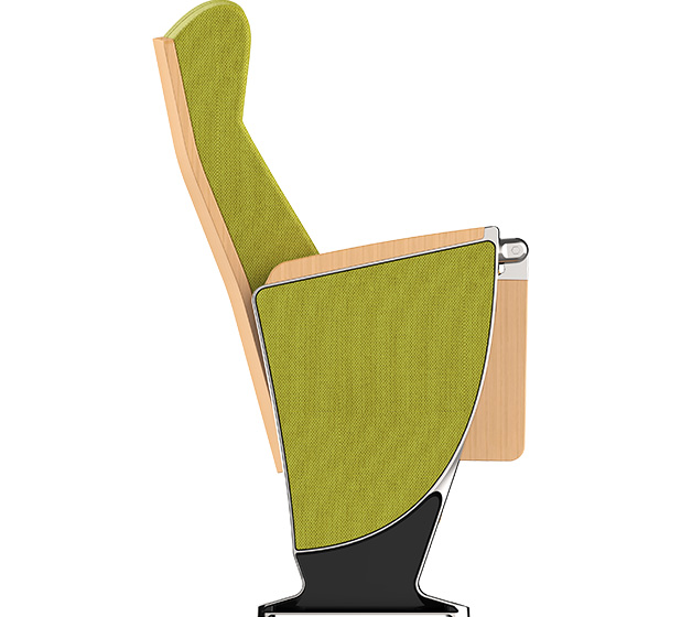 5.下藏式寫字板:寫字板鏈接鋁頭、托板采用優(yōu)質鋁合金材料經模具一體壓鑄成型。寫字板面板采用實木多層板材料經模具一體壓鑄成型,寫字板固定方式為機械原理高強度螺栓,使寫字板鏈接部位越用越結實,不會出現(xiàn)松弛現(xiàn)象,尺寸規(guī)格:長度為381.4±2mm,寬度為261.2±2 mm,厚度為15mm;扶手和寫字板向上傾斜6.5度保證書寫自然狀態(tài),寫字板打開回收時需帶消音功能,不可有反彈力與噪音出現(xiàn).力學性能通過相關家具產品質量檢驗中心QB/T2602-2013《影劇院公共座椅》的相關檢測依據(jù),寫字板靜載:300N。