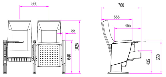 2.座椅基本中心距為560±5mm,座包打開側(cè)深760±5mm,基本椅高為1025±5mm,最小排距:950mm。