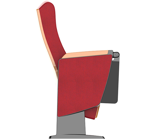 4.下藏式寫字板:寫字板鏈接鋁頭、托板采用優(yōu)質(zhì)鋁合金材料經(jīng)模具一體壓鑄成型。寫字板面板采用ABS復(fù)合材料經(jīng)模具一體注塑成型,寫字板固定方式為機(jī)械原理高強(qiáng)度螺栓,使寫字板鏈接部位越用越結(jié)實(shí),不會(huì)出現(xiàn)松弛現(xiàn)象,尺寸規(guī)格:長度為381.2±2mm,寬度為261.2±2 mm,厚度為45mm;扶手和寫字板向上傾斜6.5度保證書寫自然狀態(tài),寫字板打開回收時(shí)需帶消音功能,不可有反彈力與噪音出現(xiàn)。