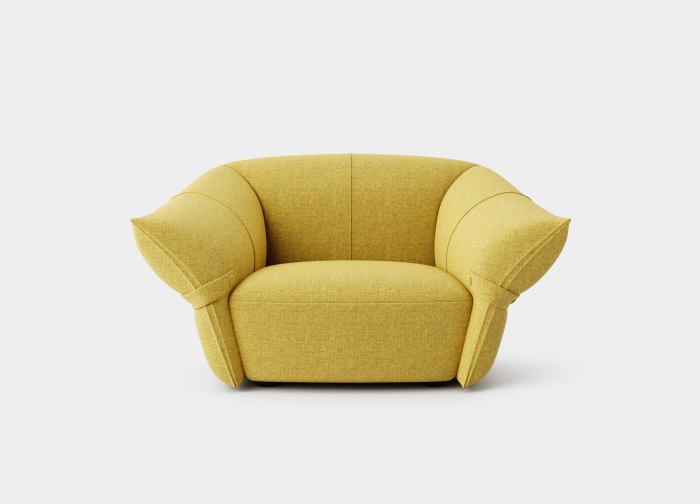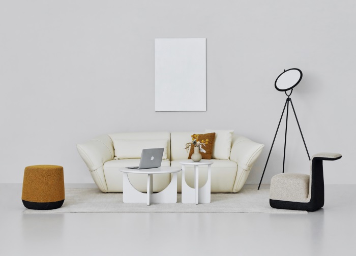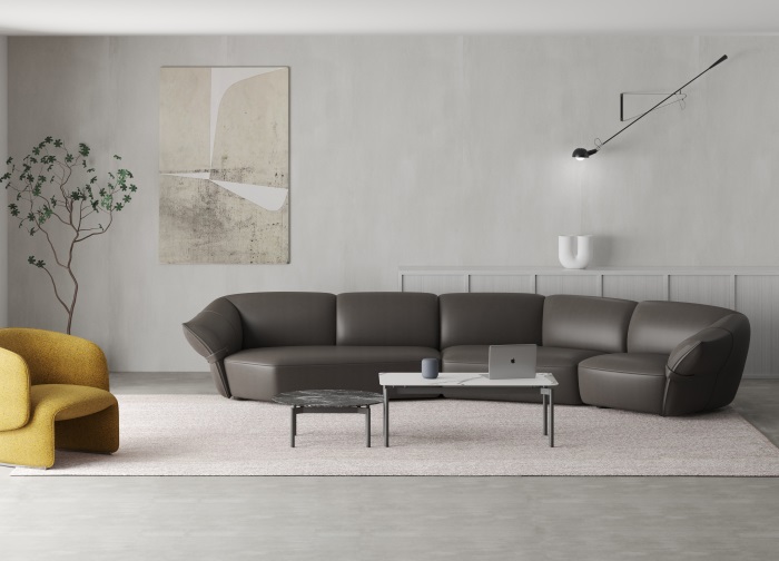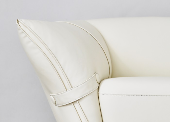 花朵盛開時(shí),花瓣和花蕊會展開,設(shè)計(jì)師從花朵的外觀形象中提煉出花瓣盛開時(shí)的姿態(tài),并應(yīng)用到沙發(fā)的設(shè)計(jì)中。沙發(fā)的扶手采用了往外張開的形狀,類似于花朵的花瓣展開的姿態(tài),同時(shí)扶手上還有滾邊點(diǎn)綴,使得整個(gè)沙發(fā)看起來更加生動(dòng)有靈性。此外,沙發(fā)的扶手還可以作為靠背傾靠,滿足人們側(cè)坐時(shí)的需求。兩側(cè)拉扣的設(shè)計(jì)將外張的扶手往回收攏,猶如花瓣被花托收攏的形態(tài),使得產(chǎn)品設(shè)計(jì)更加完整,有生命力。