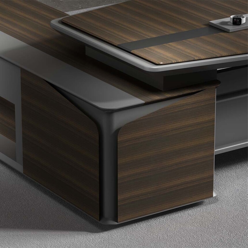 慕格斯系列簡潔的設計演繹最本質(zhì)的意式輕奢美學,設計線條流暢清晰。簡約而不失時尚,功能性與高顏值都得以兼顧。臺面以”微懸浮式“的設計理念打破傳統(tǒng),將工作區(qū)完美劃分,臺腳以精確利落的線條刻畫,穩(wěn)重不失力度。展示使用者理智成熟的氣質(zhì),萬物兼容的氣度,打造現(xiàn)代時尚的高效商務辦公空間。