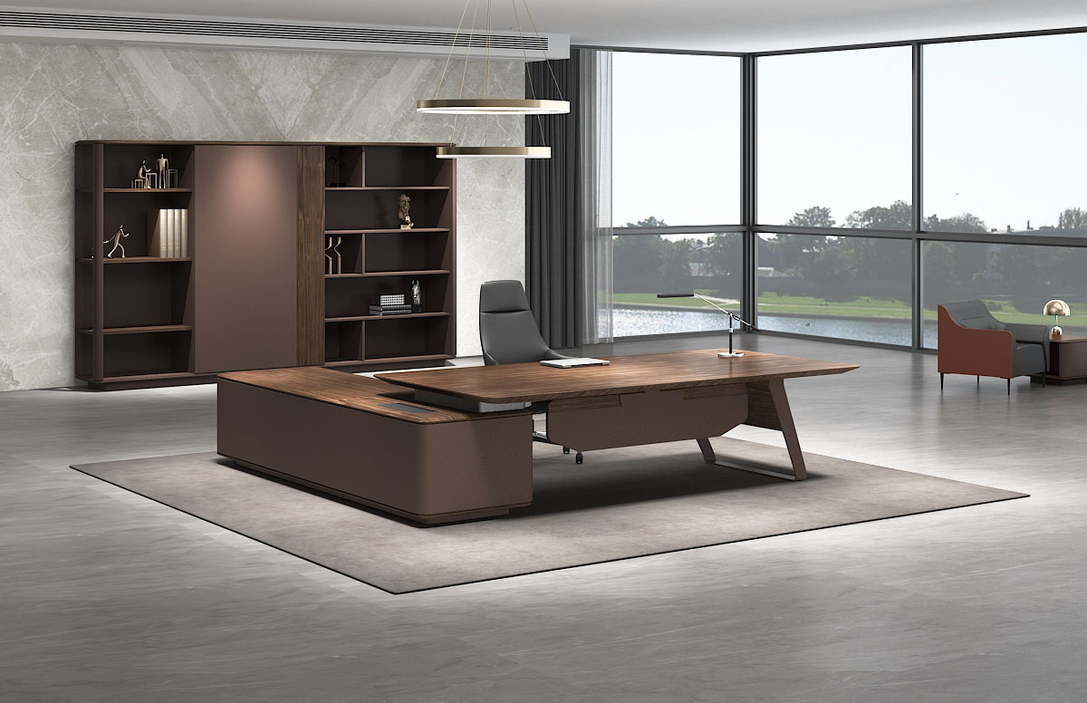 以高標準的原木質感的油漆加持,賦予了主管桌一種沉著內(nèi)斂的特性,讓每一次商務洽談變得簡單從容。