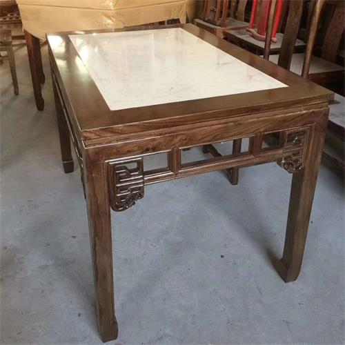 餐廳家具廠家為您展示酒樓飯店湘菜川菜館實(shí)木邊框鑲嵌大理石中式餐桌圖片展示\價(jià)格說明\定做服務(wù)。
